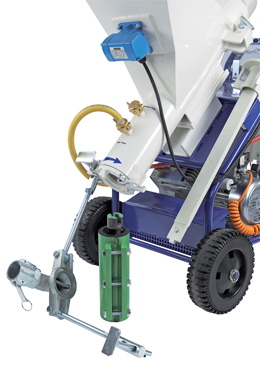 • 20 m de manguera para materiales Ø 25 mm interior, con acoplamiento rápido tipo mortero.