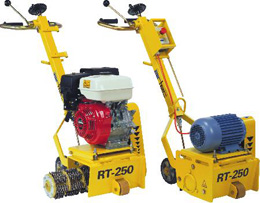 Datos técnicos: Ancho de trabajo: 250 mm Rendimiento: hasta 80 m² / h Zonas de trabajo: Ideal para quitar señalizaciones viales, superficies horizontales medianas y grandes: abrir poro en hormigón, limpieza y desoxidación de superficies metálicas (cubiertas de barcos, tanques) Potencia absorbida: 4 kW (5 Cv) eléctrico / 5,9 kW (8Cv) m. de gasolina Dotación: Fresadora RT-2500 / tambor completo con separadores y fresas / manual de uso Disponibilidad: motor eléctrico de 4 kW (mod. RT-2500) o motor de gasolina de 4 tiempos de 5,9 kW (mod. RT-2500) Kit aconsejable: Aspirador 127 / diferentes tipos de fresas disponibles.